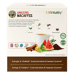 Vom Ersten bis zum letzten Schluck, Amazing Macaffee® ist eine einzigartige Erfahrung! Suchst Du nach einem gesunden, Energie spendenden und zugleich geschmackvollen Getränk, der Deinen Körper und Geist vitalisiert? Verlangt der Tag von Dir mentalen Fokus, kontinuierliche Leistung und ein starkes Immun System? Wenn ja, dann ist unser Amazing Macaffee® genau das Richtige für Dich! Durch Einsatz innovativer Technologien und basierend auf dem UR-Vitality² entwickelten CDMT®, wurden die Inhaltsstoffe synergetisch aufeinander angestimmt, um höchste Wirksamkeit zu erlangen. Genieße Deinen Amazing MaCaffee® als Starter am Morgen, vor höchst anspruchsvollen Situationen in Deinem Job, sowie vor Deinen sportlichen Aktivitäten. Ein Wegbegleiter, den Du lieben und schätzen wirst, so wie wir auch!